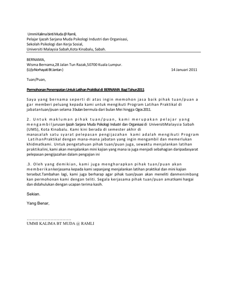 Contoh Surat Permohonan Kebenaran Bekerja